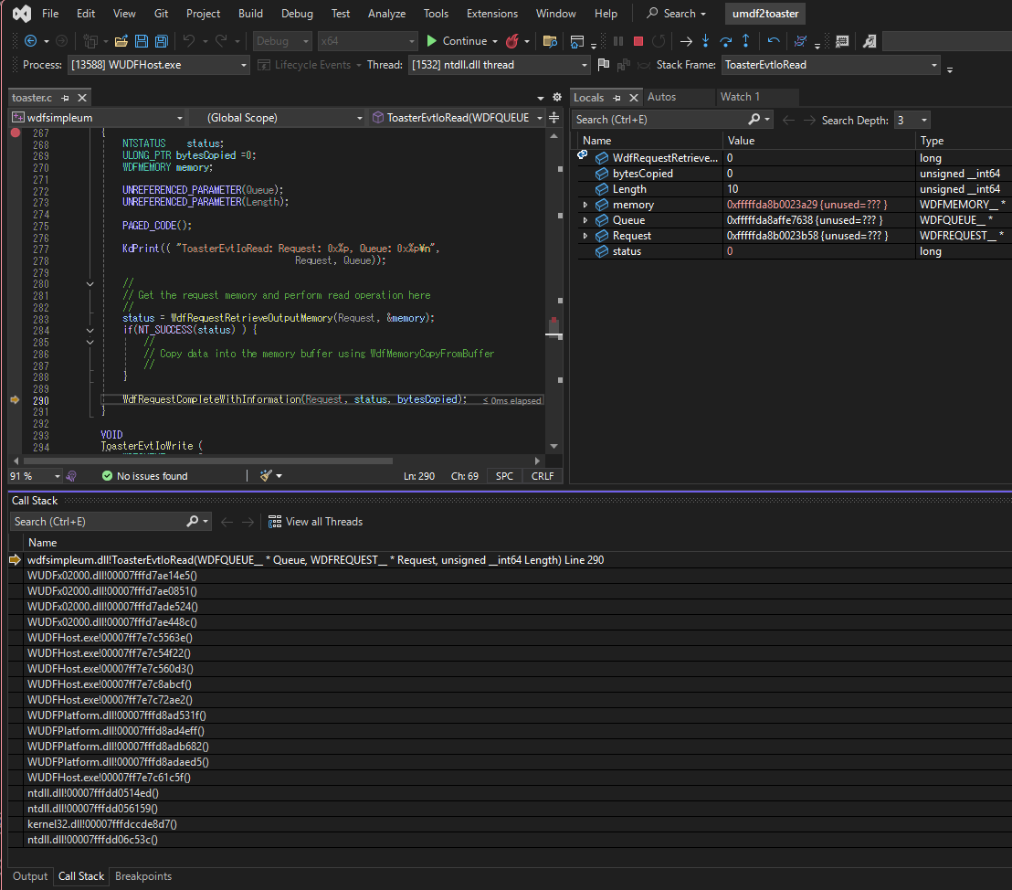 次回の記事では、任意のタイミングではなく UMDF ドライバーの DriverEntry
